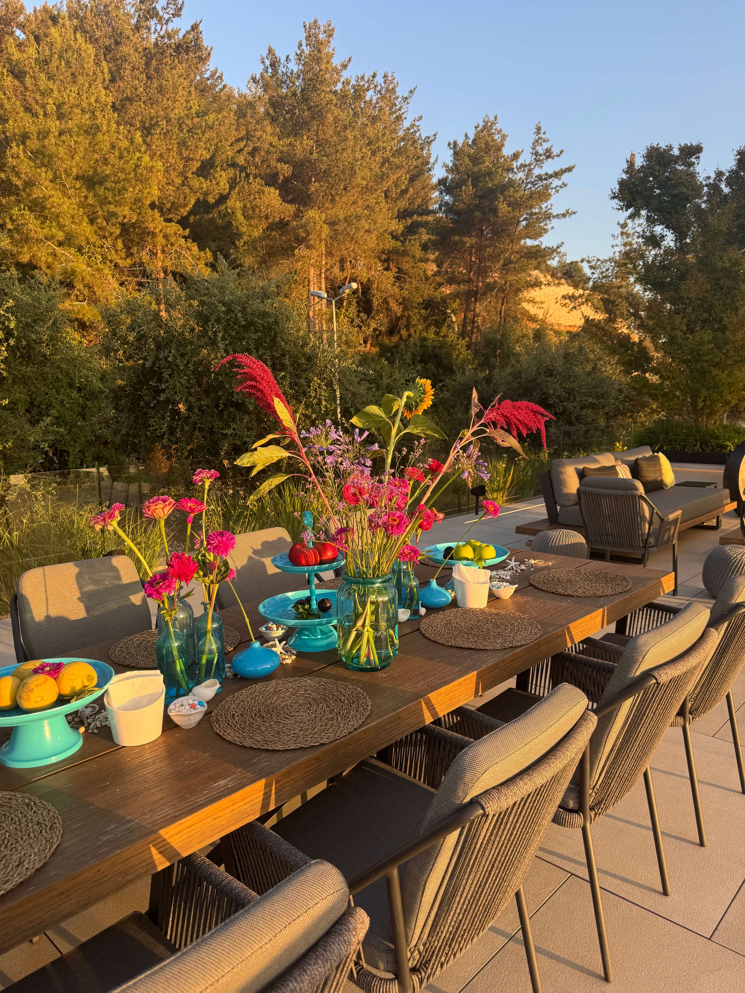 Transported straight from the cliffs of Santorini, this Mamma Mia–inspired tablescape was a celebration of joy, color, and island romance. Bursting with vivid Greek blues, soft pinks, and sun-bleached accents, the scene channeled a carefree Mediterranean spirit.